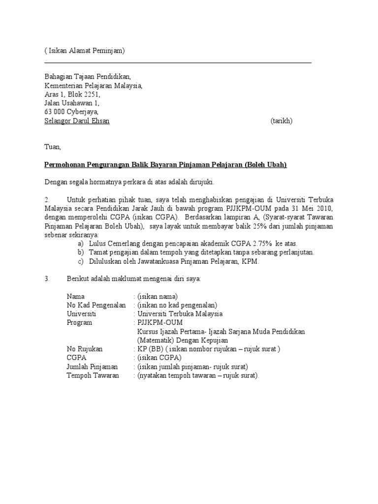 Contoh Surat Pengurangan bayar bil air. Contoh surat rayuan pengurangan bayaran ptptn contoh surat rayuan contoh surat rayuan lhdn contoh surat rayuan mrsm contoh surat rayuan. Saya ingin memohon jasa baik kementerian supaya dapat mempertimbangkan rayuan mengurangkan ansuran bayaran.
